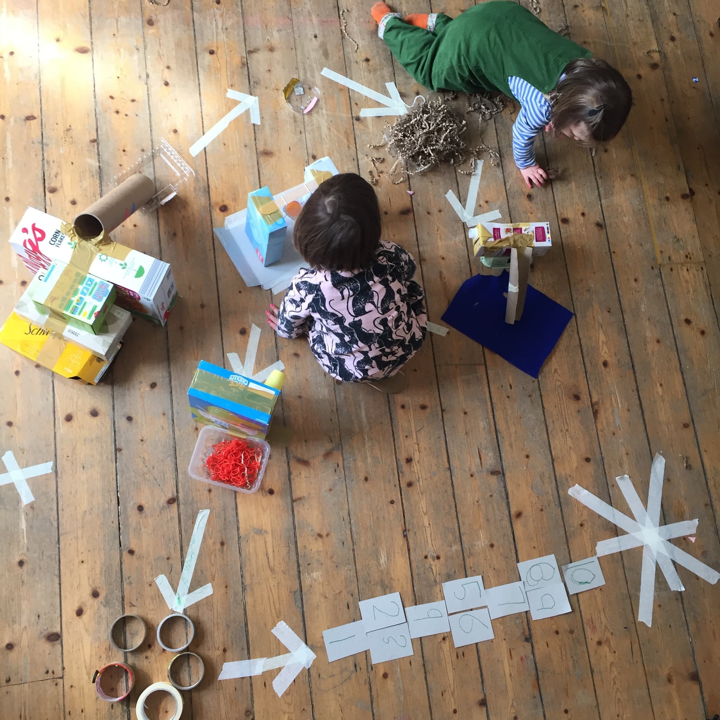 Can you make a display or decoration for people walking by to see? Maybe you'll make a rainbow by painting or colouring some of your loose parts, create a display of some of the things you’ve been making, or perhaps start a game with your neighbours?
