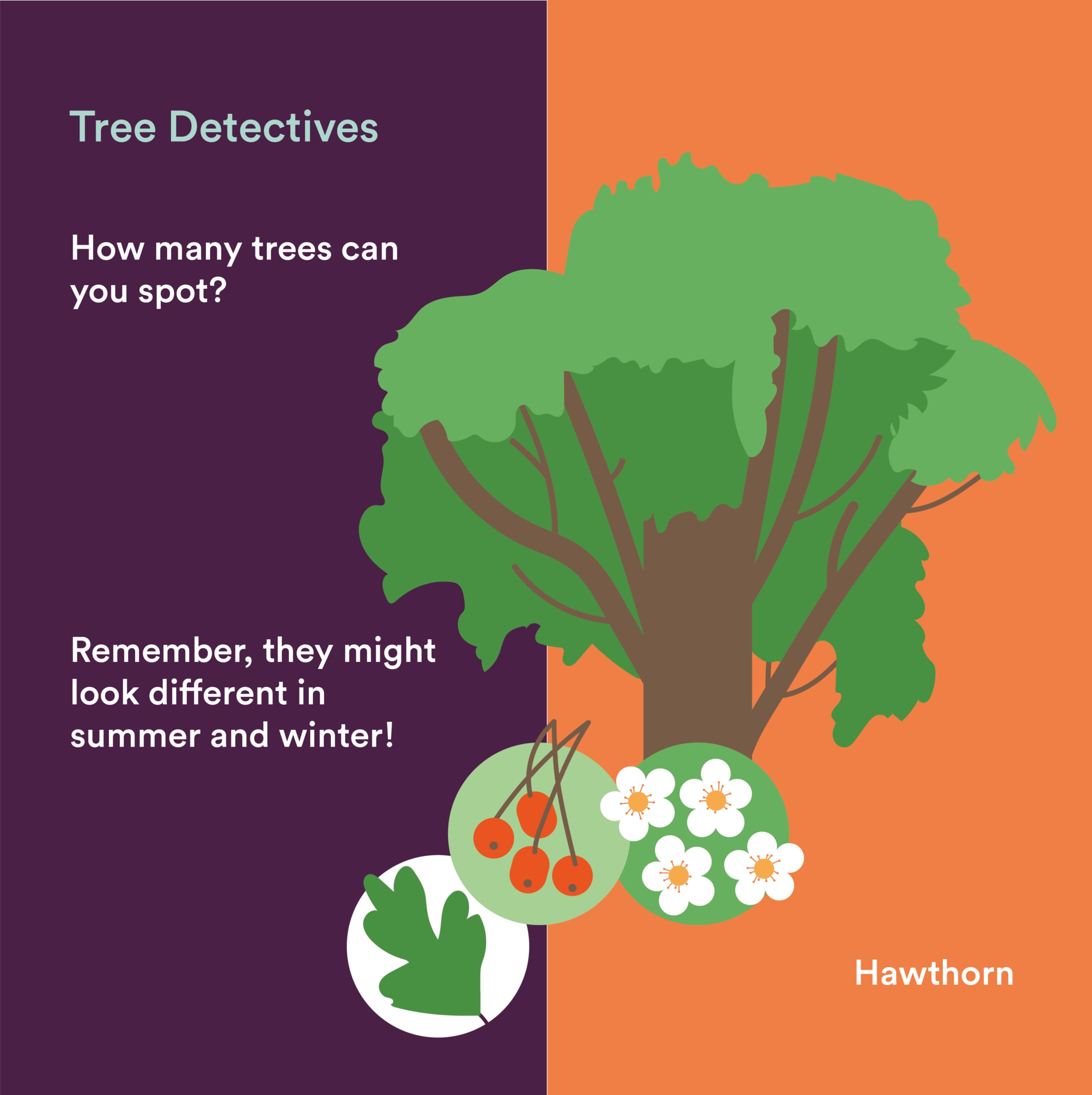This week, we’ll be playing tree detective and using our observation skills to identify different species of tree. Wrap up warm and head outside to search for the trees in the illustrations, but remember, they might look quite different if their leaves are starting to fall. Try picking up the leaves from the ground and comparing them to the illustrations.
